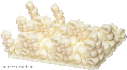 Indirect bonding trays are created with a fast-printing lower resolution clear resin that allows quick placement of orthodontic brackets